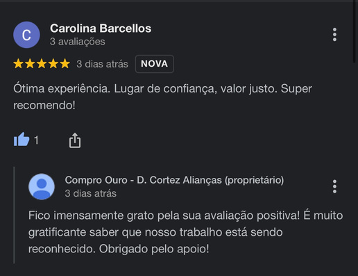 "Nossa avaliação do ouro é feita com absoluta transparência e integridade, garantindo que você receba o valor justo e honesto por suas joias."